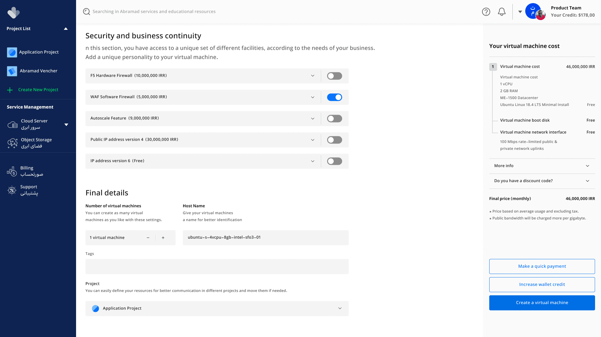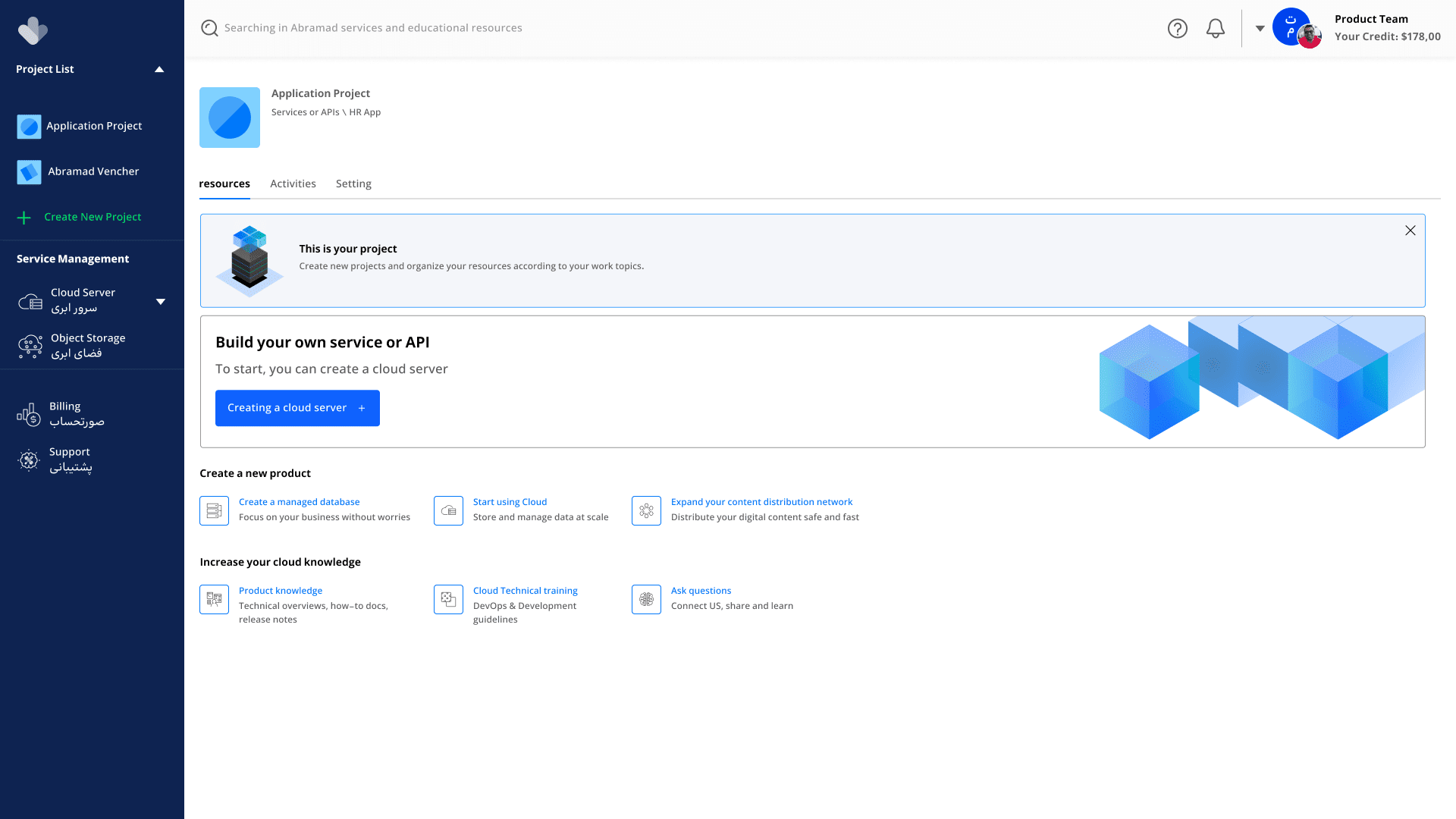 At Abramad, a proud member of System Group Company, which is one of the largest IT companies in Iran, we've gone the extra mile to create a user-centered design for our cloud platform that meets the main needs of our valued customers.